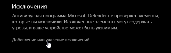 - В разделе "Исключения" нажмите "Добавить или удалить исключения" и подтвердите действие ("Да"), чтобы разрешить изменение списка исключений.