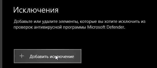 - Нажмите "Добавить исключение" → "Папка" и укажите путь к папке лаунчера.